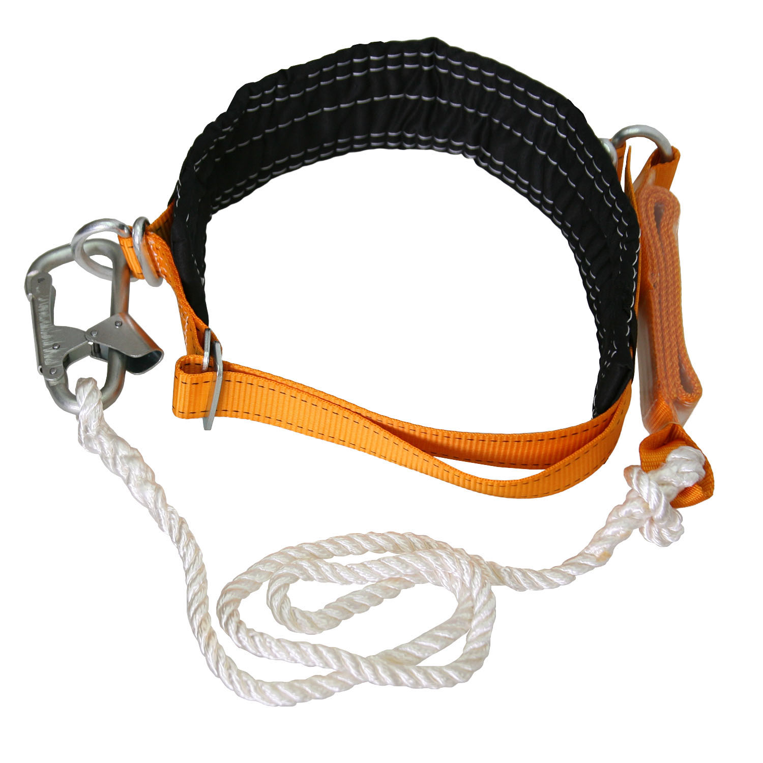 Удерживающая система (безлямочная) со стропом из каната и с амортизатором. Данная система является принадлежностью личного снаряжения, предохраняющего работающего от падения с высоты в процессе производства строительных, монтажных, ремонтных и восстановительных работ. Применение: для удержания от падения с высоты, позиционирования, ограничения и безопасного перемещения на высоте. Система состоит из привязи (ремня с пряжкой, кушака, двух D-колец) и стропа (полиамидного каната, амортизатора, монтажный карабин и крепежная петля).